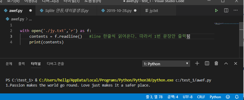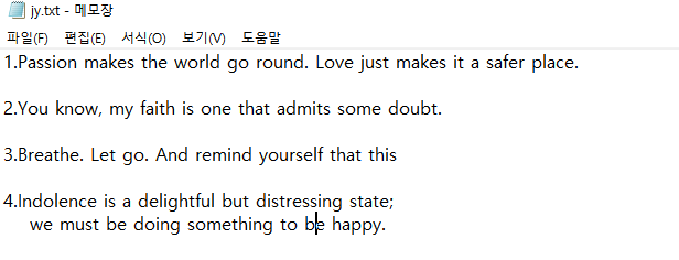 ์คํธํ์ผ์ ๊ฒฝ๋ก๋ ../jy.txt ๊ฐ ๋๊ฒ ๋ค์. (๊ฐ์ ํด๋์์์ผ๋ฏ๋ก)