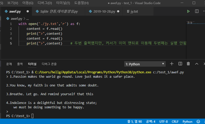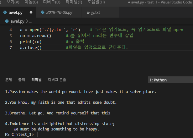 ์คํธ ํ์ผ ์ฝ์ด์์ ์ถ๋ ฅํ๊ธฐ read()