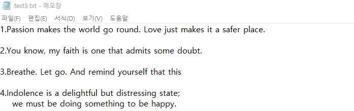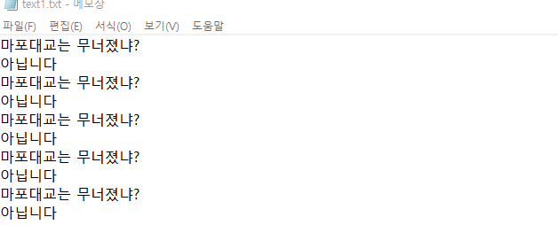 ๋ ฅ๋ text1ํ์ผ์ ๋ค๋ฅธ๋ด์ฉ์ ๋ค์ ๋ฃ์ด๋ณด๊ฒ ์ต๋๋ค.