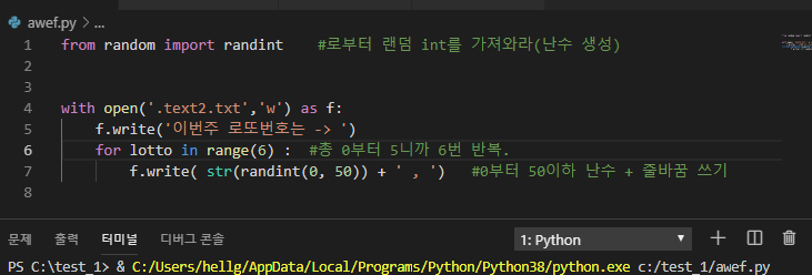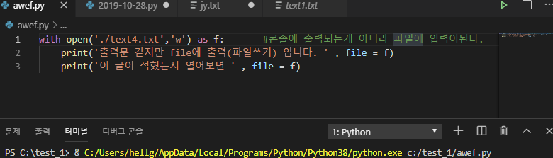 * ํ๋ฆฐํธ๋ฌธ print('๋ด์ฉ', file = f) ์ผ๋ก ํ์ผ์ฐ๊ธฐ