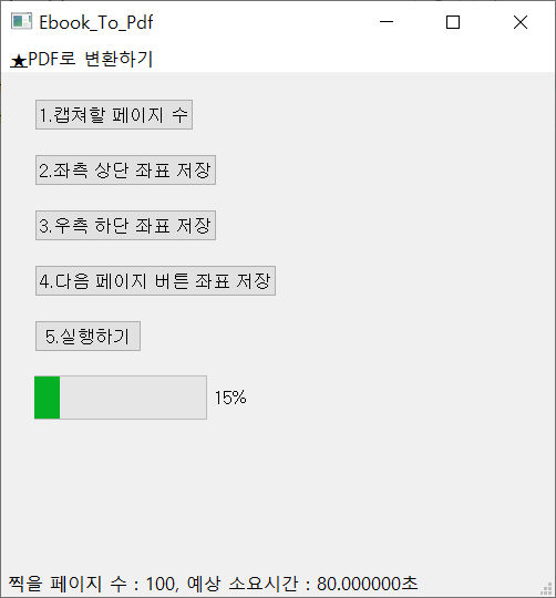 (python) Ebook , ์ด๋ฏธ์ง, ์คํฌ๋ฆฐ์ท์ pdf ๋ณํ ๋งคํฌ๋ก(macro) <pyautogui , pyqt5 , pynput , pyinstaller >