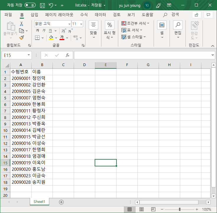 ํ์ผ์ list.xlsx๋ก ์ ์ฅํ์ต๋๋ค. 18ํ (์ซ์๋ถ๋ถ) 2์ด(A,B)๋ก ๊ตฌ์ฑ๋์ด์์ต๋๋ค.