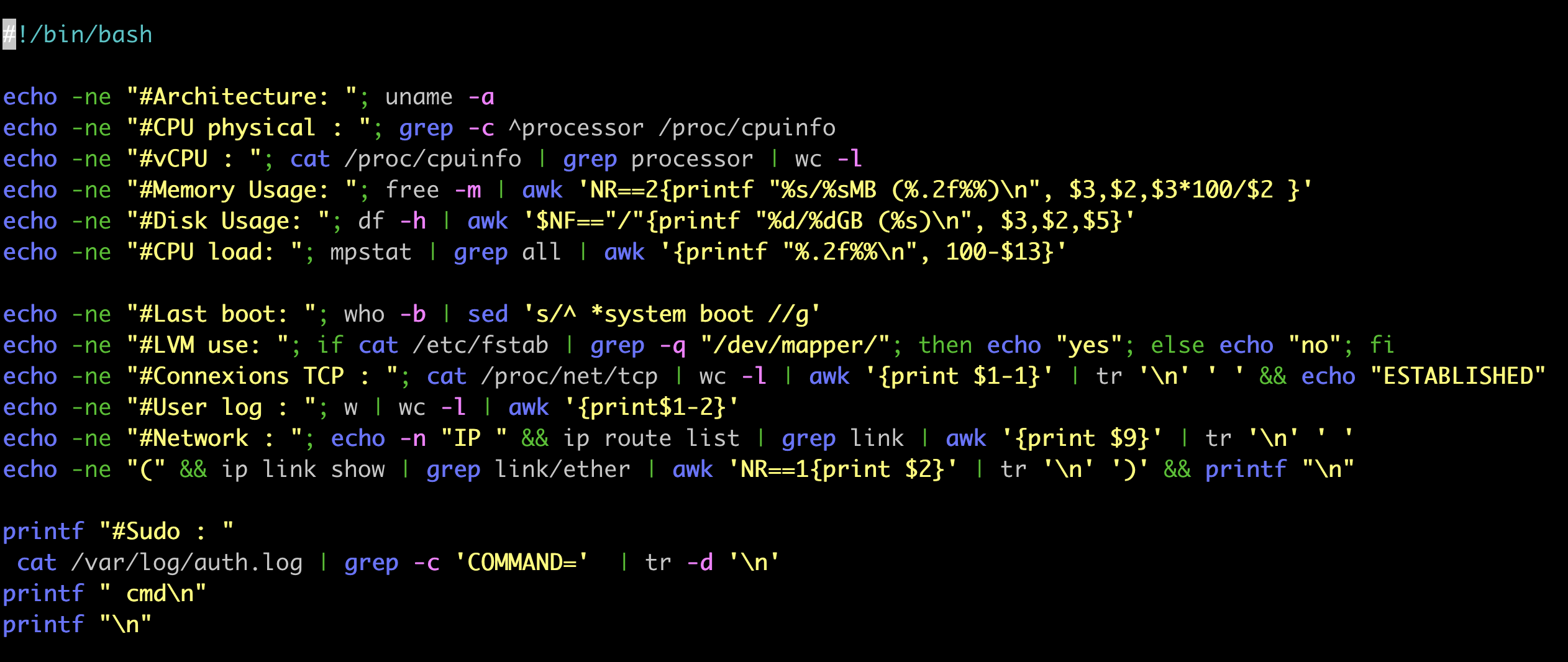 echo -ne "#Sudo : "; cat /var/log/sudo.log | wc -l | tr '\n' ' ' && echo "cmd"