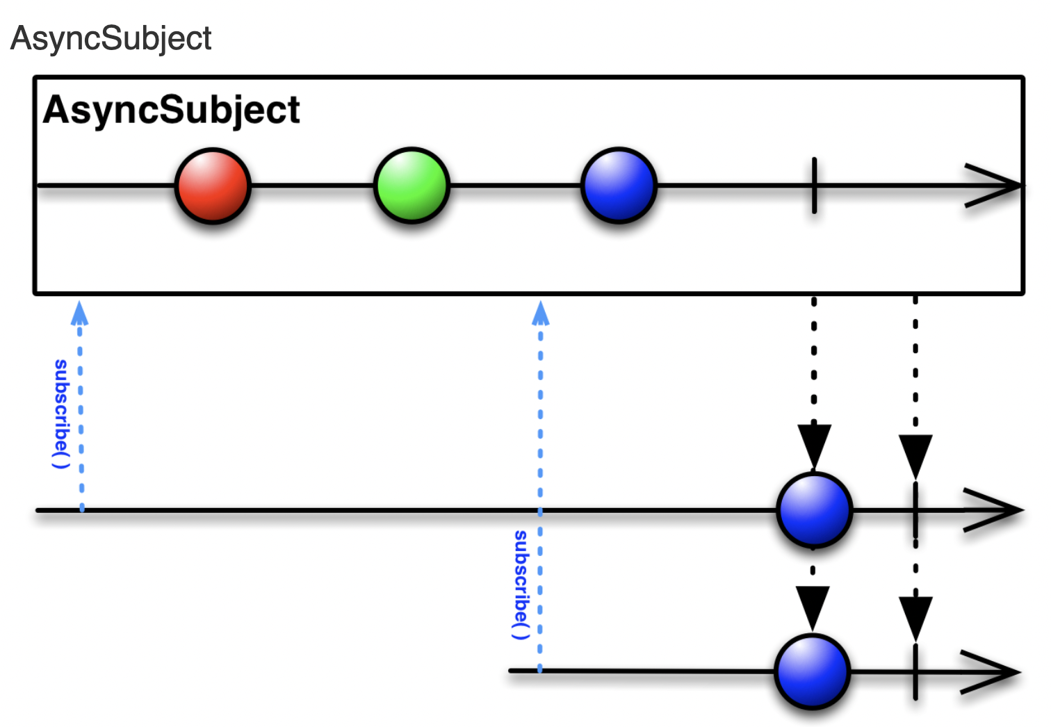 구독 이후에 발생된 이벤트만 Observer에게 전달한다. marbleDiagram확인할것!! Subject가 (Completed or Error)된 이후에는 onNext를 해도 이벤트가 observer에게 전달되지않는다.
