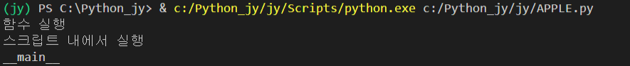 Else๋ฌธ์ด ์ถ๋ ฅ๋์๊ณ , print(__name__)์ APPLE๋ก ์ถ๋ ฅ ๋์์ต๋๋ค.